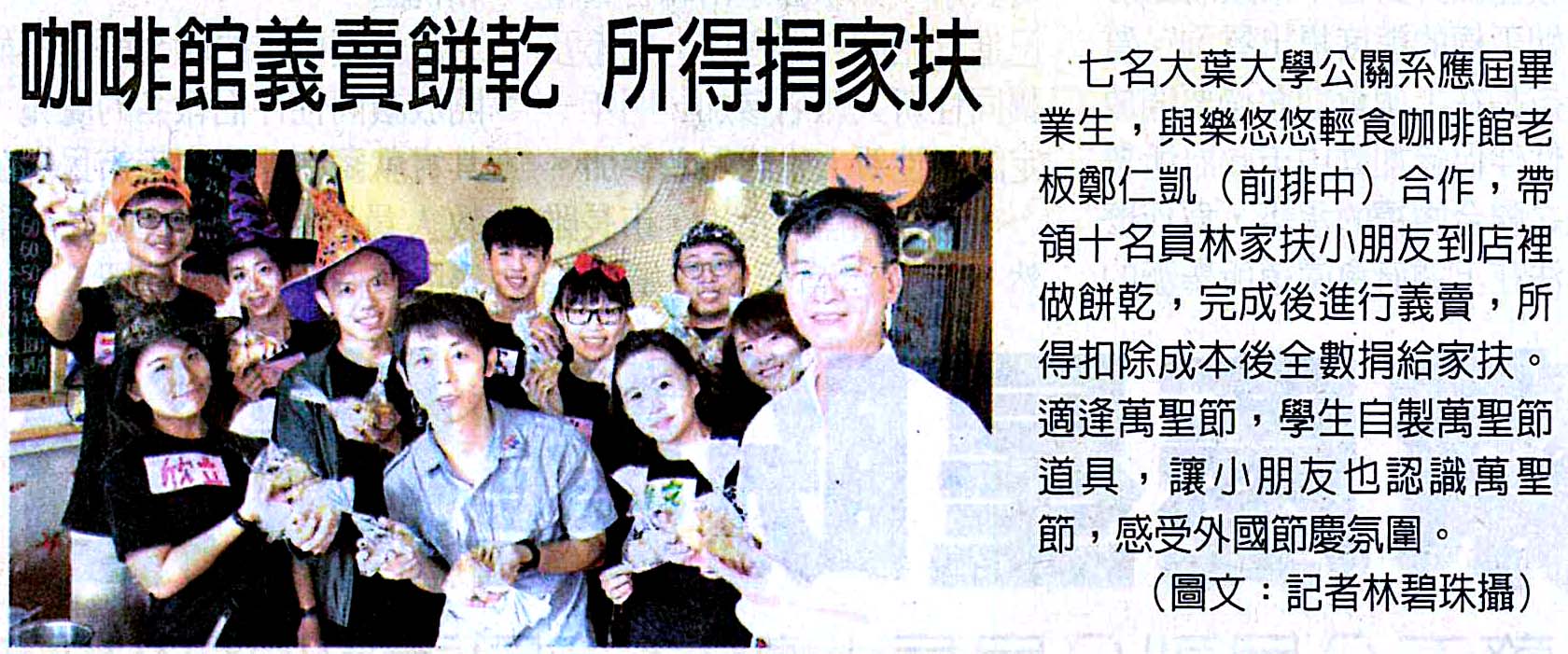 咖啡館義賣餅乾 所得捐家扶