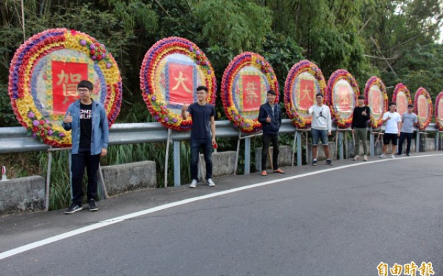 送陳俊龍生日花圈的是台南市鹽水區「後厝福安宮」的義工群,他們16人集資6400元(一對400元),向花圈業者訂了32座花圈,上面寫著「賀大葉大學人力資源暨公共關係學系陳俊龍同學生日快樂 鹽水親友團賀」。