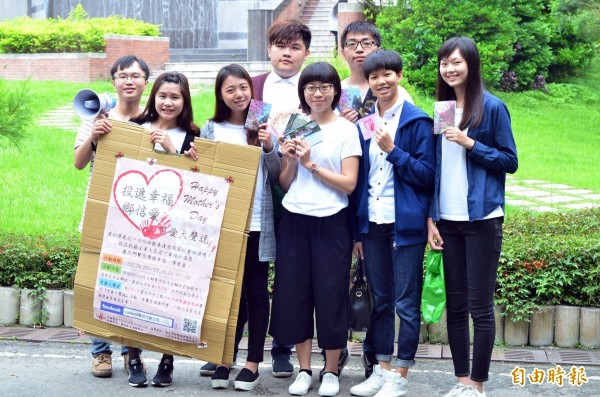 策畫此次活動的人資系大三生吳翊瑞表示,隨著臉書、LINE等社群軟體風行,動筆或是寫卡片的機會少很多,這次與7位同學企劃母親節活動,就是希望讓大家重溫傳統卡片傳情的滋味。