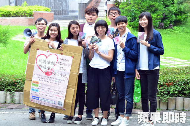 主辦的大葉大學人資公關系學生吳翊瑞說,隨著臉書、LINE等社群軟體風行,動筆寫卡片或開口說愛的機會少很說,因此和其他7位同學組成「United8整合行銷模擬公司」,企畫這次母親節活動,讓大家一起重溫傳統卡片傳情風味,他們也準備康乃馨分送周邊店家感謝平日對學生的照顧。