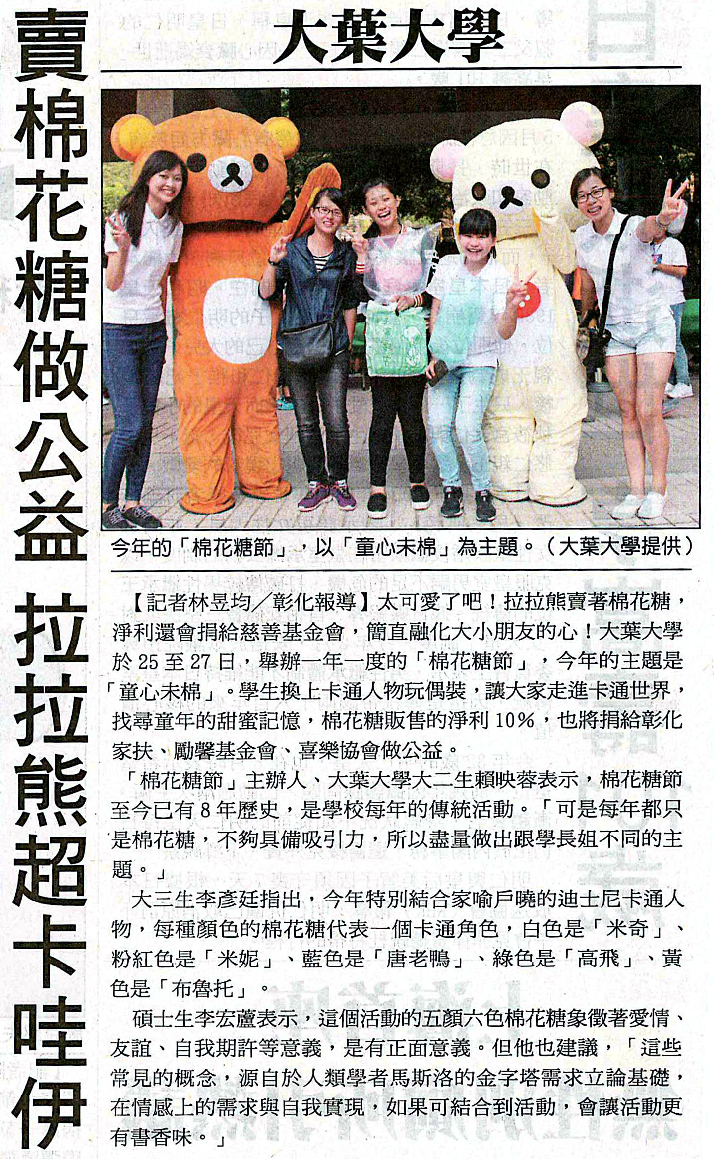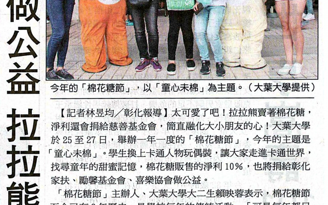 大葉大學賣棉花糖做公益 拉拉熊超卡哇伊