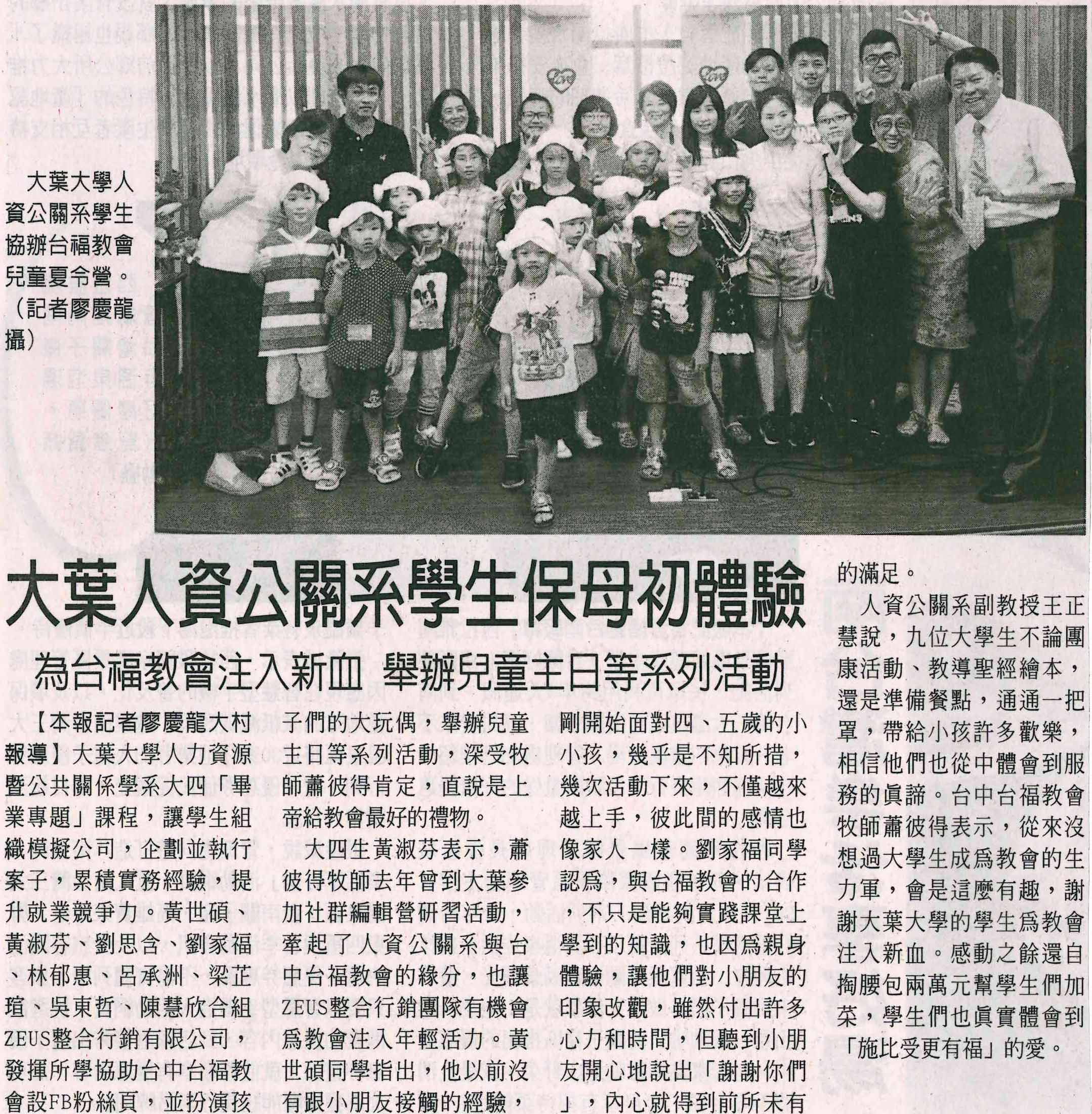 大葉人資公關系學生保母初體驗