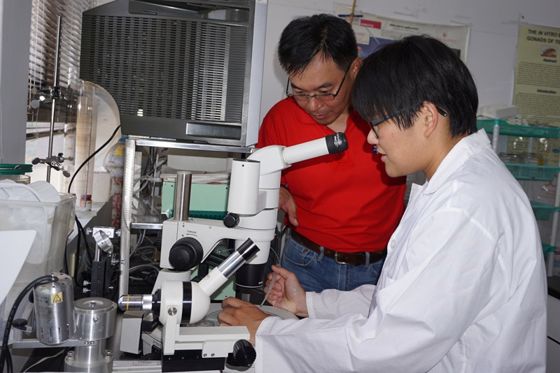 鄭雅云在大二時加入黃尉東老師的「動物基因轉殖研究室」,在老師與學長姊指導下研究吳郭魚和斑馬魚的繁殖生理、內分泌及基因轉殖,大三下學期提出「電刺激對斑馬魚色素細胞形態、顏色變化與相關基因表現影響分析」計畫,獲科技部獎助,她研究發現特定電場會改變色素基因表現,鄭雅云認為,執行科技部計畫是很好的學習機會,可以累積研究經驗,不論升學或職場都有幫助。