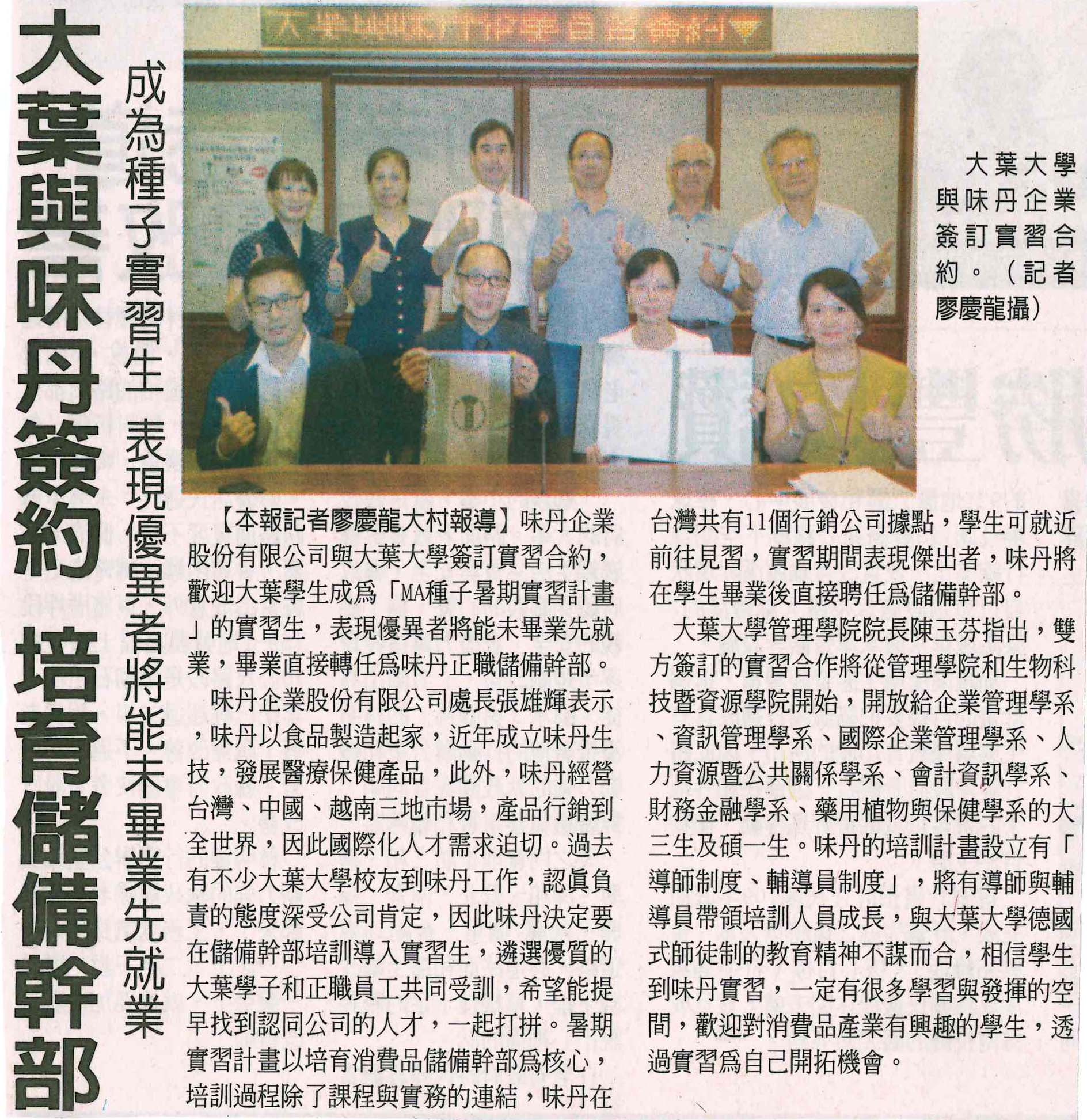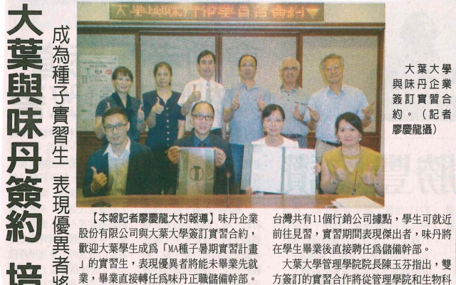 下一則:培育儲備幹部 大葉大學與味丹企業簽約