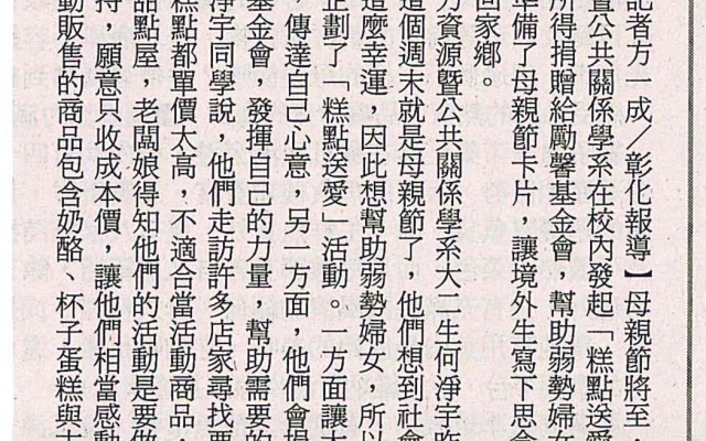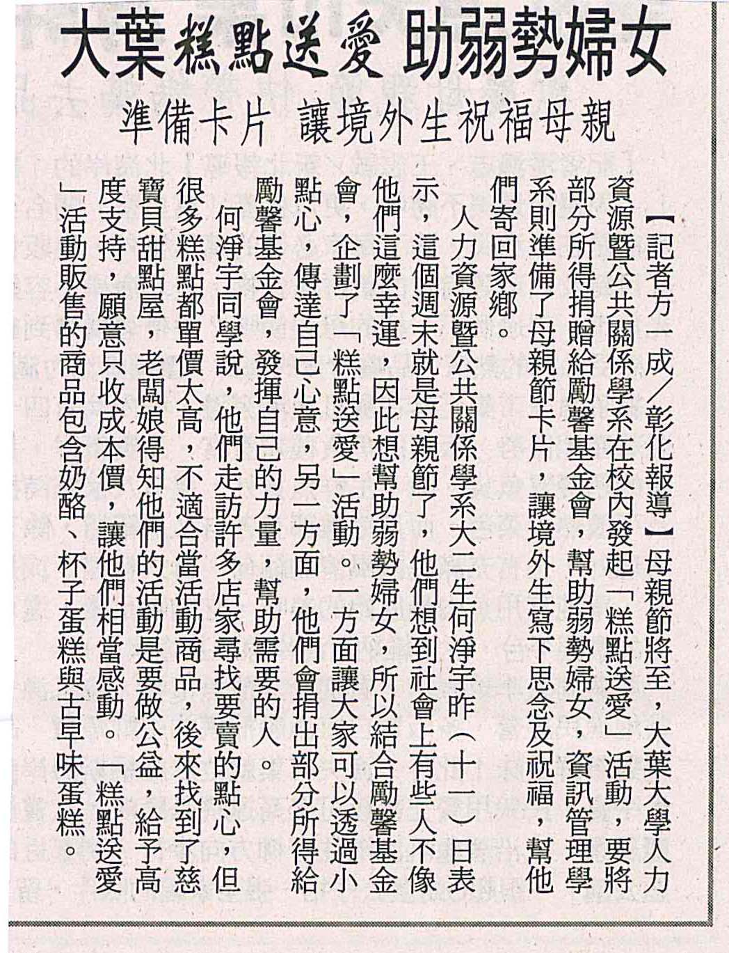 下一則:大葉大學人資公關系 賣糕點助勵馨