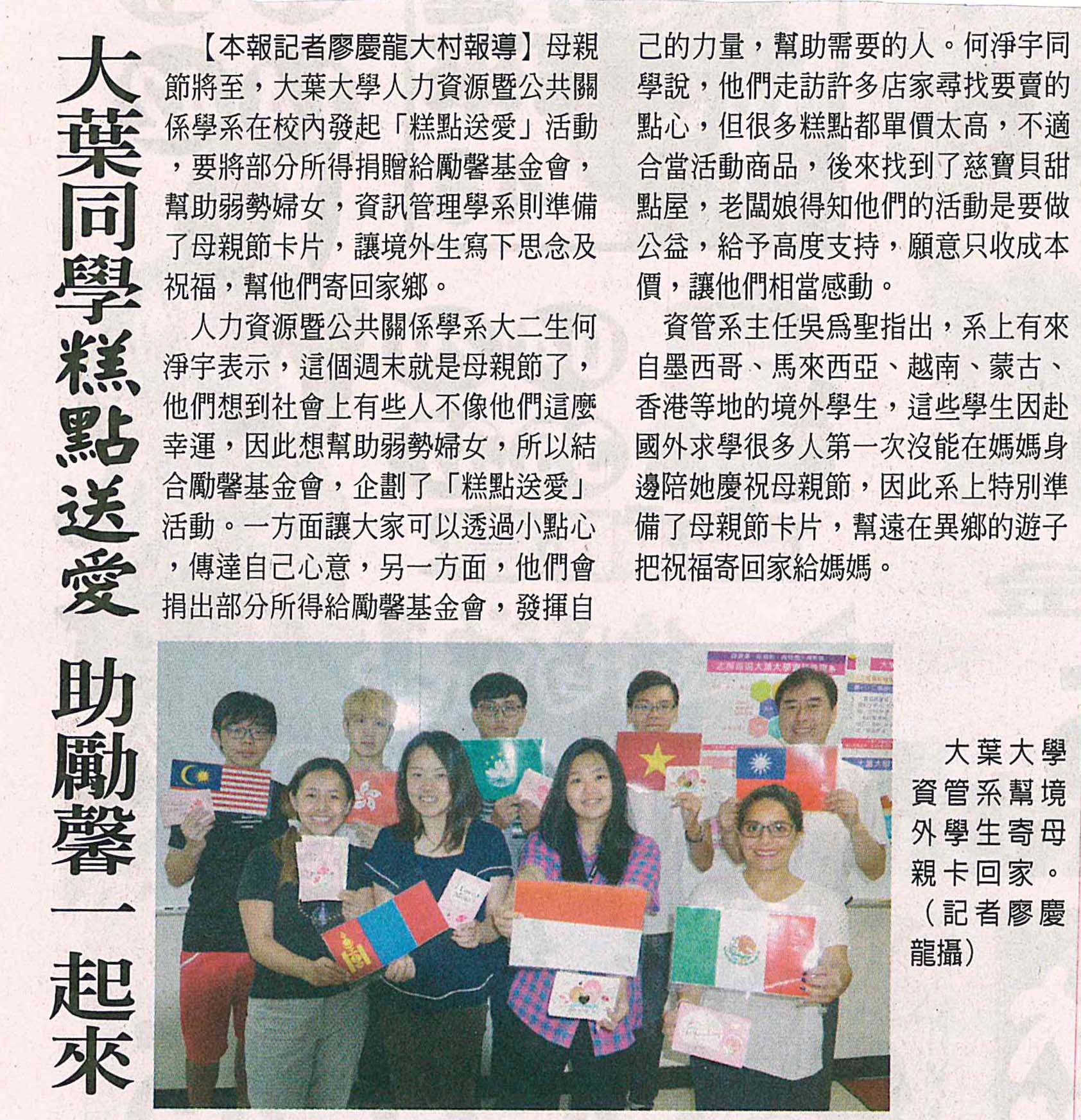 下一則:大葉糕點送愛 助弱勢婦女