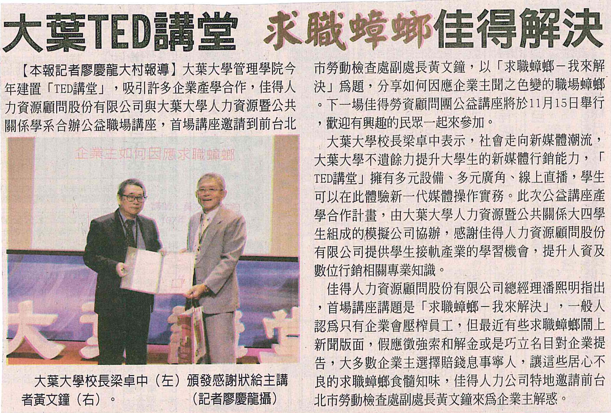 上一則:攜手大葉大學「求職蟑螂-我來解決」公益講座登場