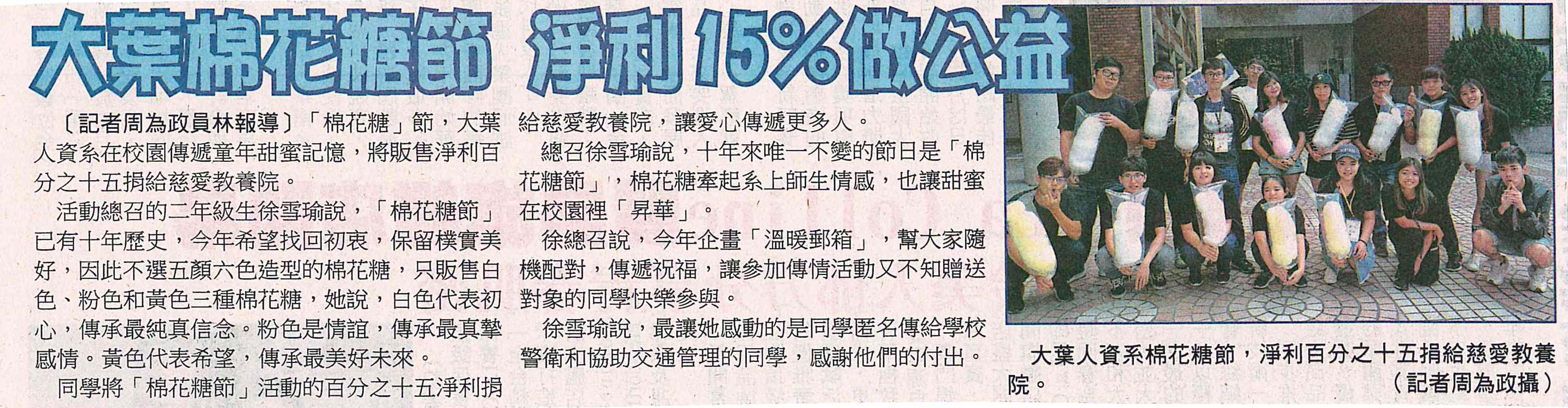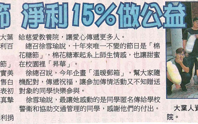 上一則:大葉棉花糖節 捐15%淨利給教養院