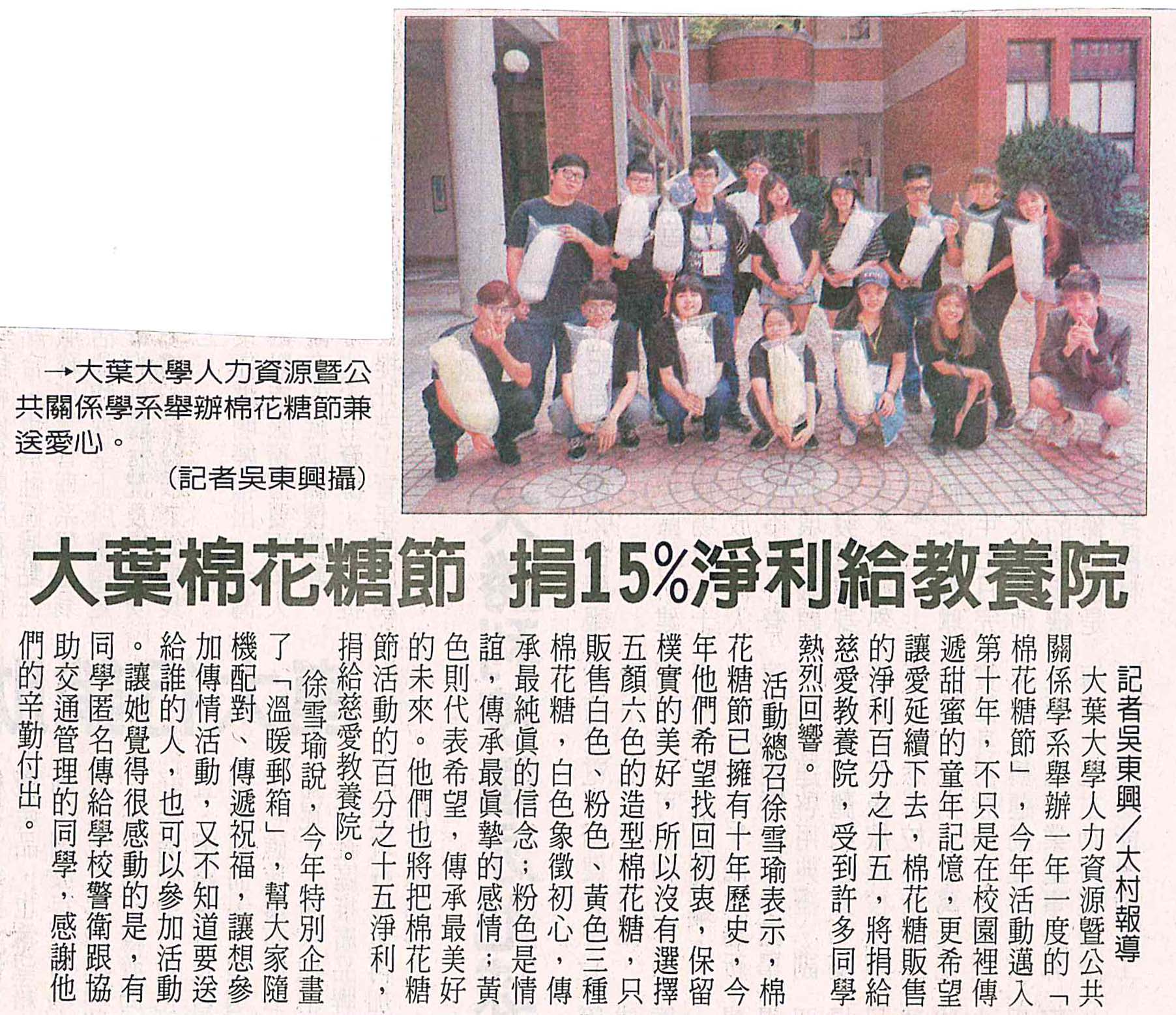 上一則:大葉大學人資公關系棉花糖節傳愛 捐助慈愛教養院
