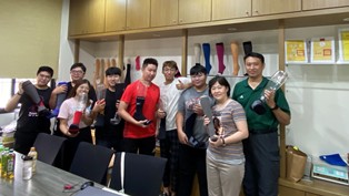 產學攜手,開創新局!大葉大學人力資源暨公共關係學系主任王正慧帶領大四生蔡書丞、陳佳銘、蔡洺蒝、簡誌宏、黃信韶與賓特立實業股份有限公司產學合作,學生發揮創意,透過網路社群行銷,幫助廠商開拓市場。