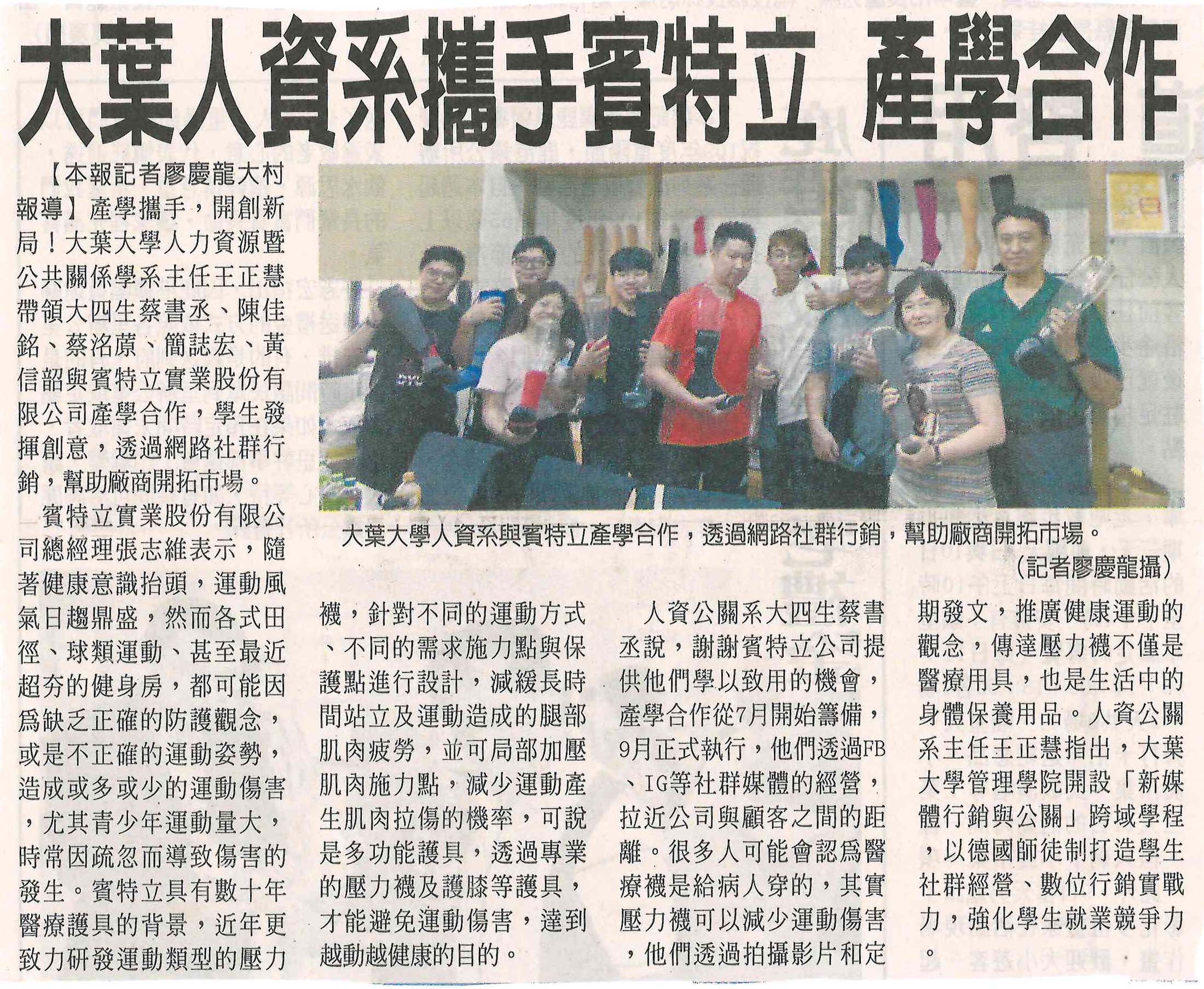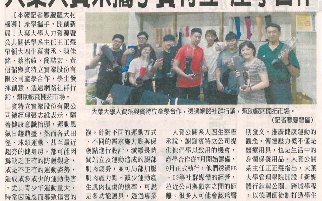大葉人資系攜手賓特立 產學合作