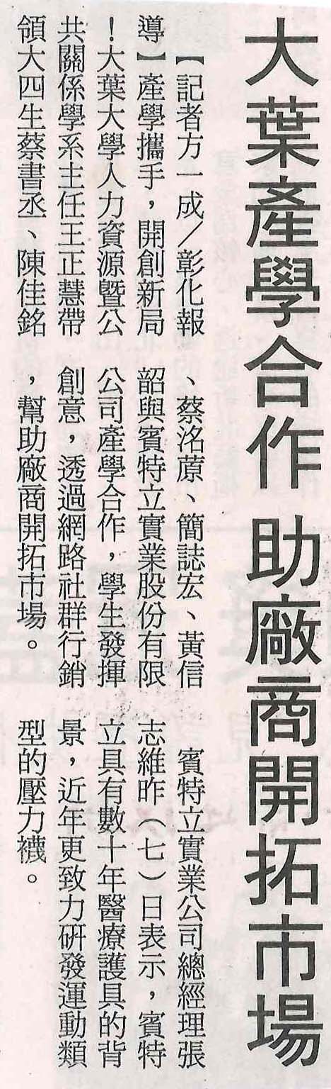 下一則:大葉人資系攜手賓特立 產學合作