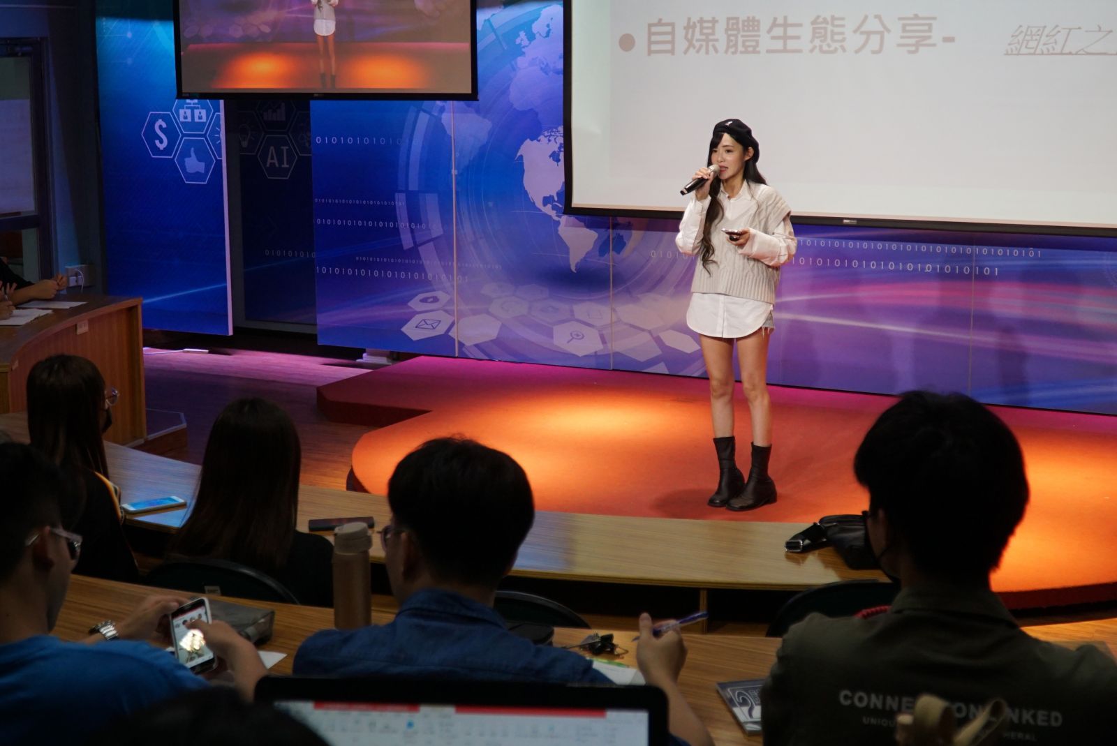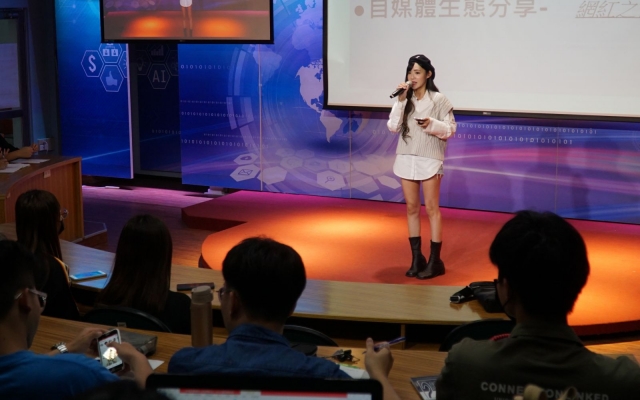 網紅經濟日益發達,網紅、YouTuber對大學生來說是很有吸引力的工作,而且入行的門檻不高,管理學院針對產業趨勢開設「新媒體行銷與公關」跨域學程,幫助學生接軌產業,特別邀請網紅王雅婷與學生面對面,分享網紅的生活。