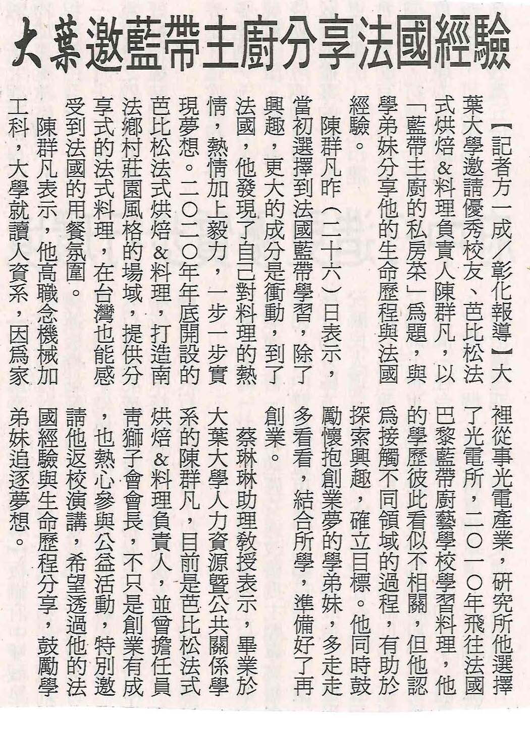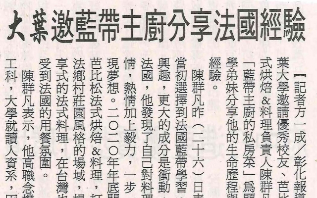 下一則:藍帶主廚大葉演講 分享法國經驗