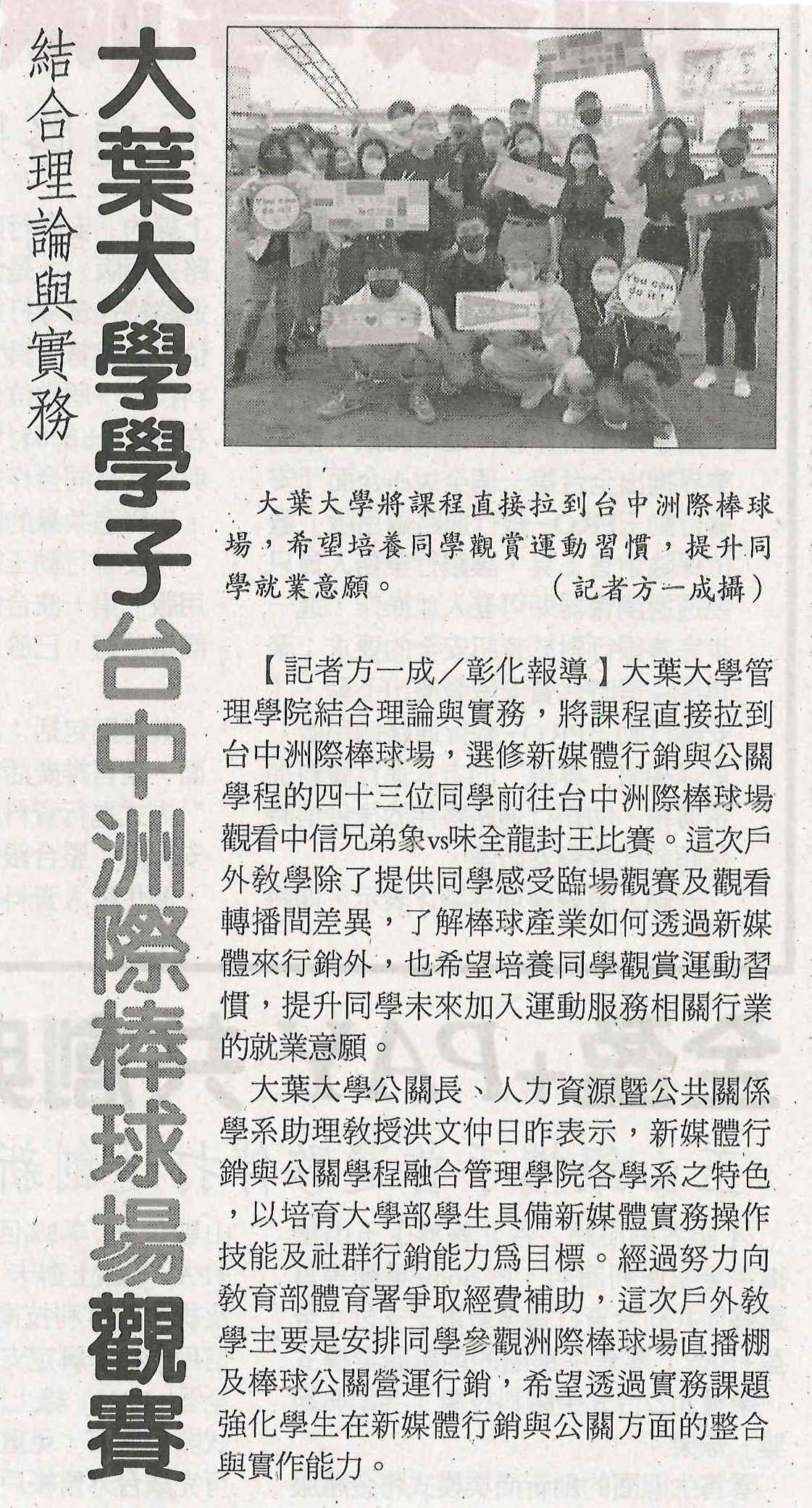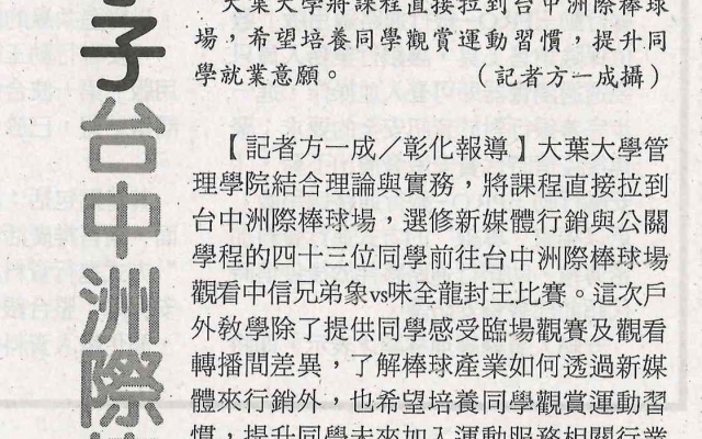下一則:大葉大學新媒體學程同學到球場為中華職棒加油